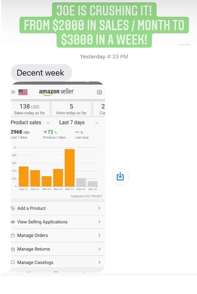 Testimonials Disclaimer: The testimonials featured on this website are from past and current students of ONE UP FBA. These testimonials reflect the real experiences of those individuals but are not representative of the average or typical results. In accordance with FTC guidelines, these testimonials should not be understood as guarantees of future performance or success. Each student worked diligently to achieve their results, and individual results may vary. Testimonials should not be interpreted as a promise of earnings, profits, or any specific outcome from following the course.