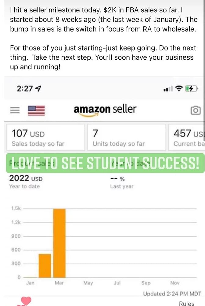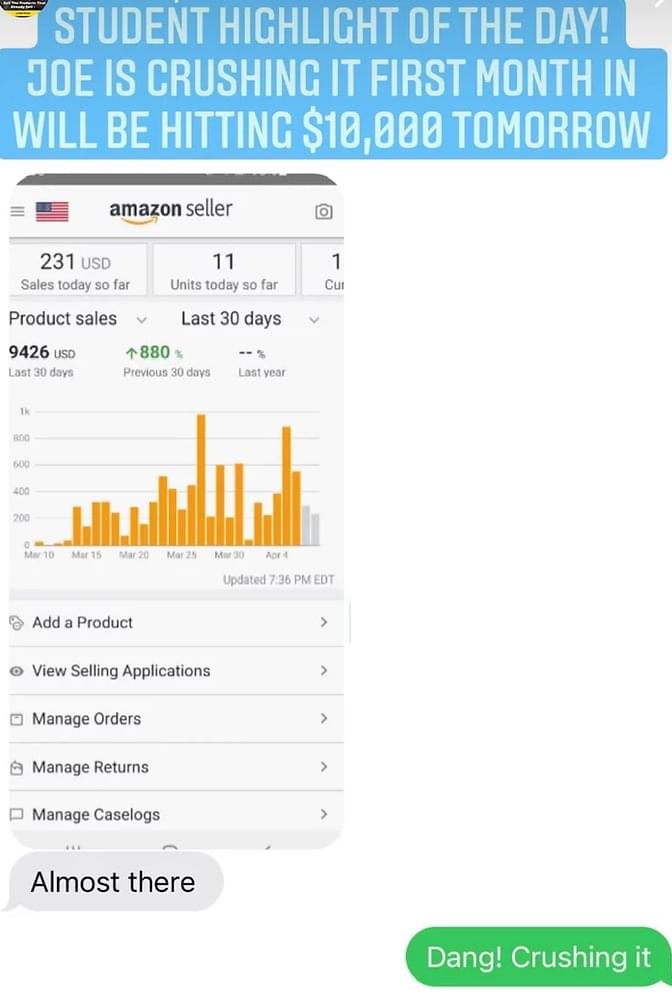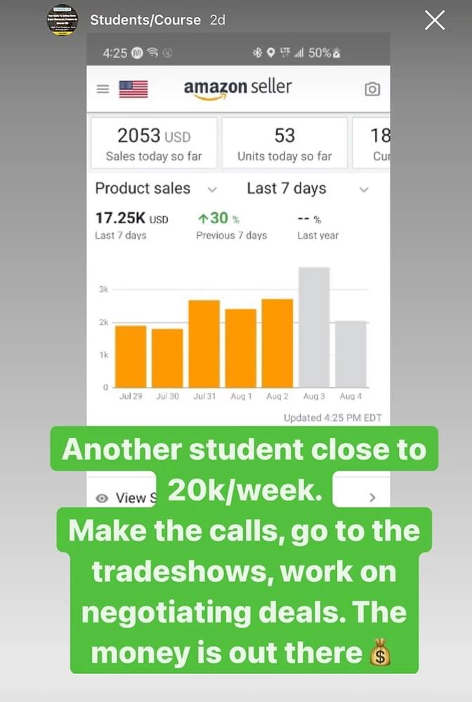 It is the sole responsibility of the student to conduct their own research and exercise due diligence when selecting suppliers, choosing products, and making financial decisions in their Amazon business.